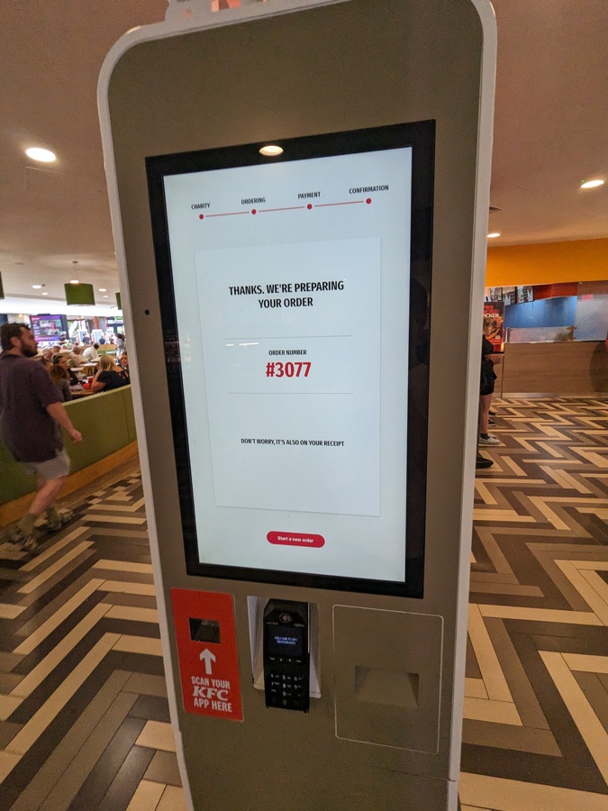 そしてお昼はケンタッキーフライドチキンにすることに。日本でも普及しつつある自動発注機で難なく購入。